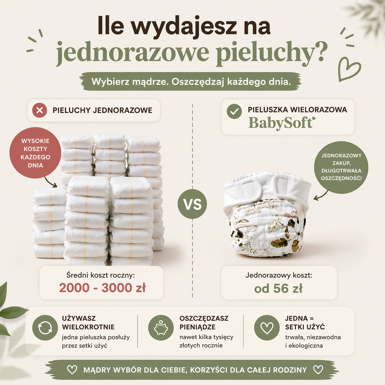 BabySoft™ – Pieluszki Wielorazowe | Oddychające, Miękkie 2 szt.
